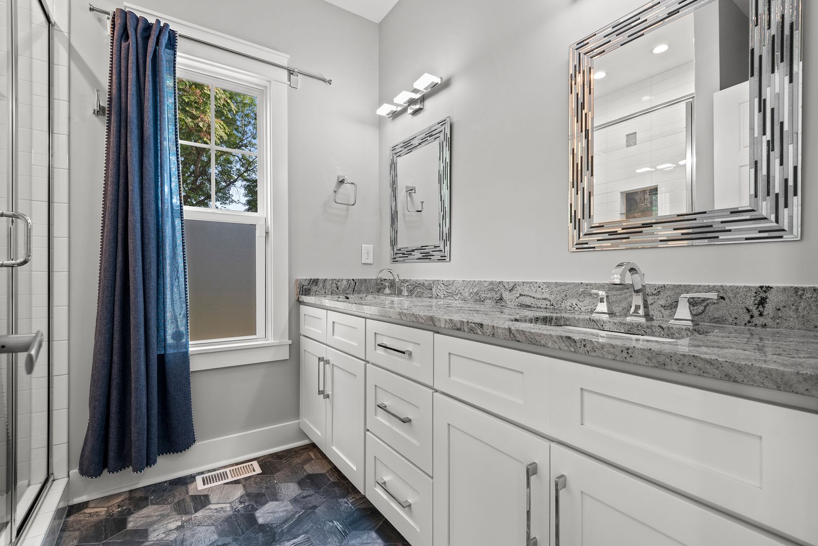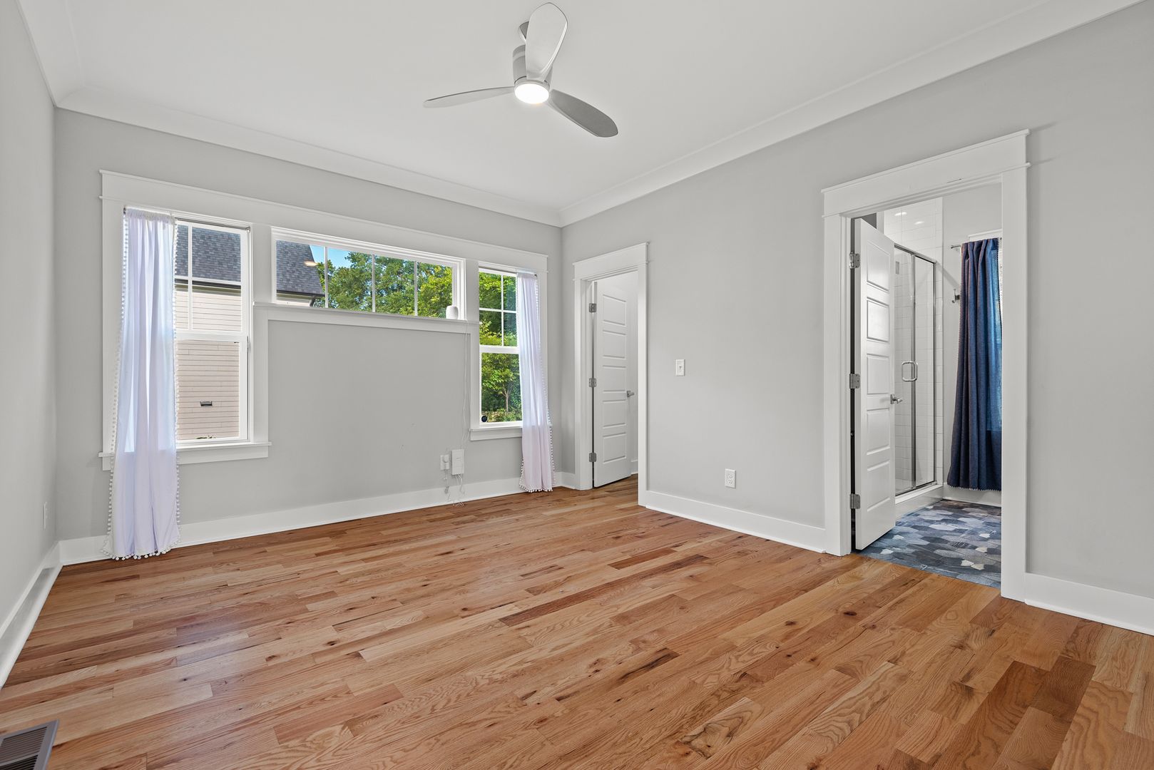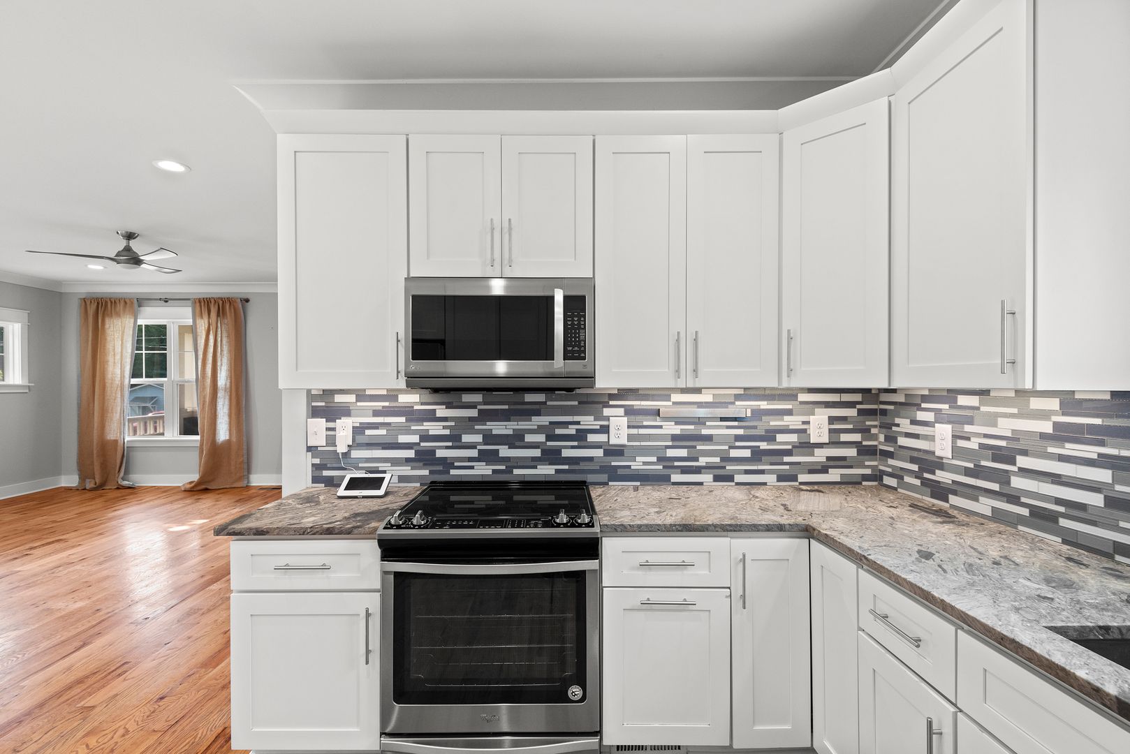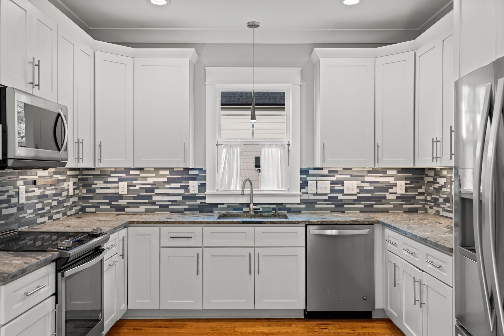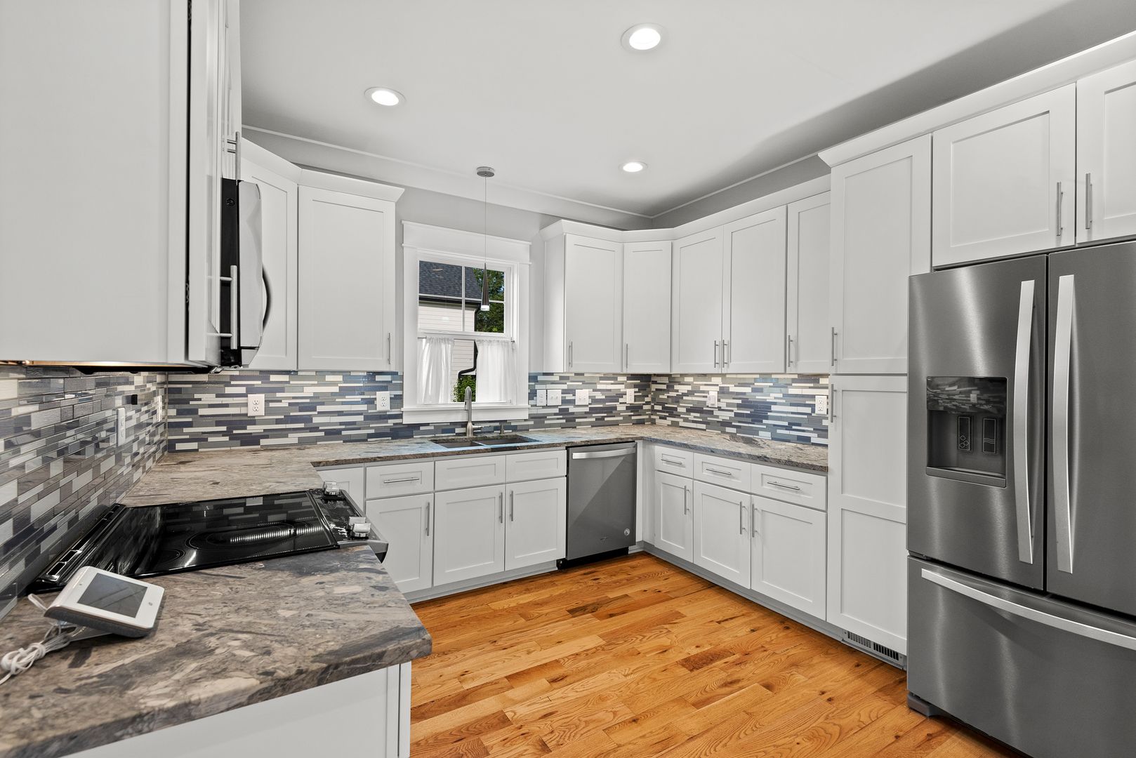 Kitchen features level 3 quartzite countertops, stainless appliances, LED under cabinet lighting and custom wood cabinets. The first floor's primary bedroom offers convenience and privacy. Beautifully designed primary suite bathroom features level 2 granite countertops and fully tiled shower!