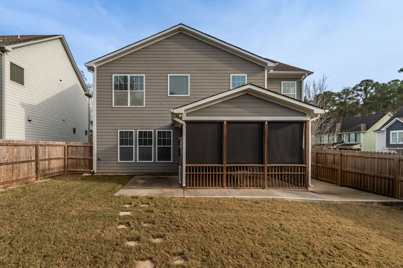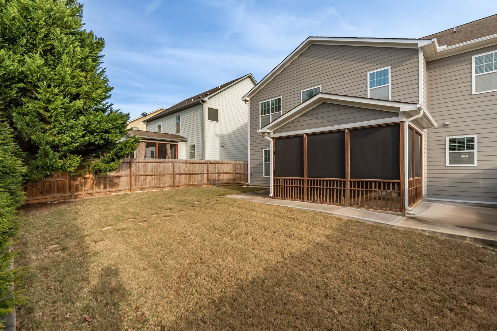 Welcome to this beautifully maintained 4-bedroom, 3.5-bath home offering over 2,800 sq. ft. of comfortable living space. Built in 2012, this home features a spacious and inviting layout perfect for living and entertaining. The kitchen features stainless steel appliances, a gas range, expansive island, abundant cabinetry, and a large pantry. The kitchen flows seamlessly into the bright, open living room featuring a cozy gas fireplace and ample natural light. A separate dining room and breakfast area provide multiple options for dining. Step outside to the screened-in back porch, equipped with shades for privacy and comfort, overlooking a well-kept lawn with privacy trees and a fully fenced backyard. Upstairs, you’ll find a versatile loft, a spacious primary suite with a tray ceiling, and a luxurious primary bath offering a large soaking tub, double vanity, and walk-in shower. A second bedroom includes its own en-suite full bath, while two additional well-sized bedrooms share easy access to another full bath. The convenient upstairs laundry room comes with washer and dryer included.