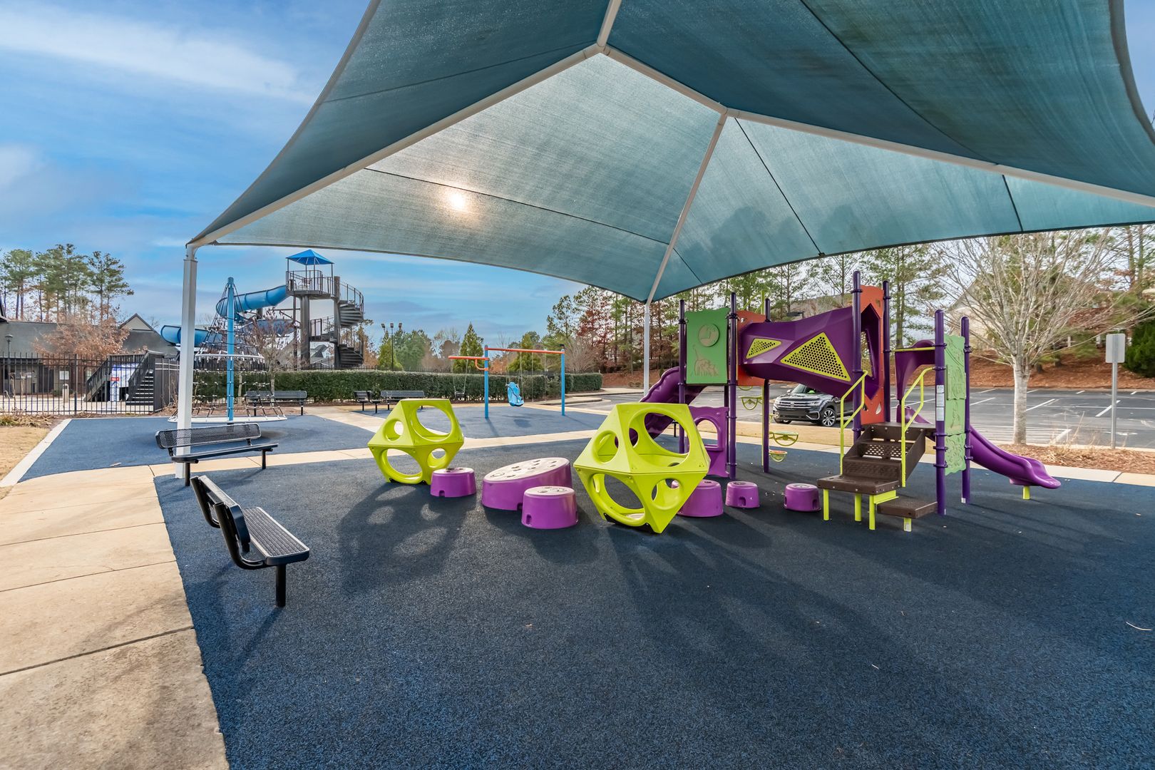 Additional features include a security system setup, ample storage, two car garage and lawn care. Located in the desirable Woodcreek community, residents enjoy access to exceptional amenities including a community center, resort-style pool with slides and a lazy river, fitness center, and tennis courts.