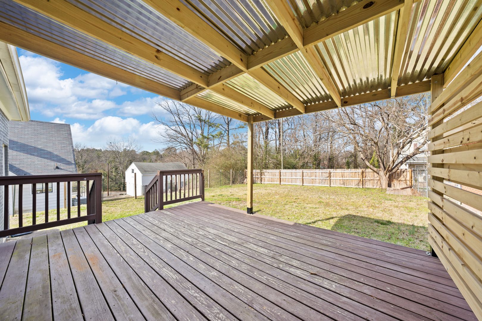 Outside, you'll find a charming front porch - the perfect spot for a couple of rocking chairs to sit and watch the world go by. In the back, there is a large, fully fenced yard with a deck perfect for entertaining guests or just relaxing in the sun.