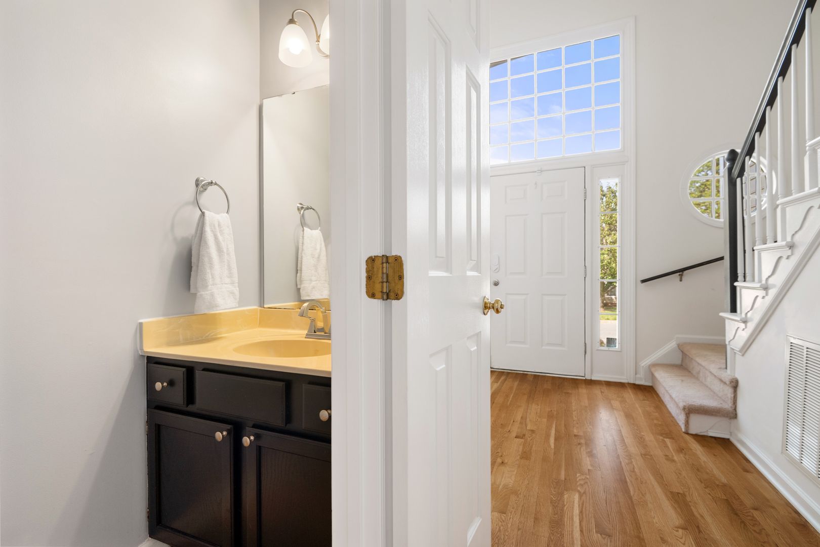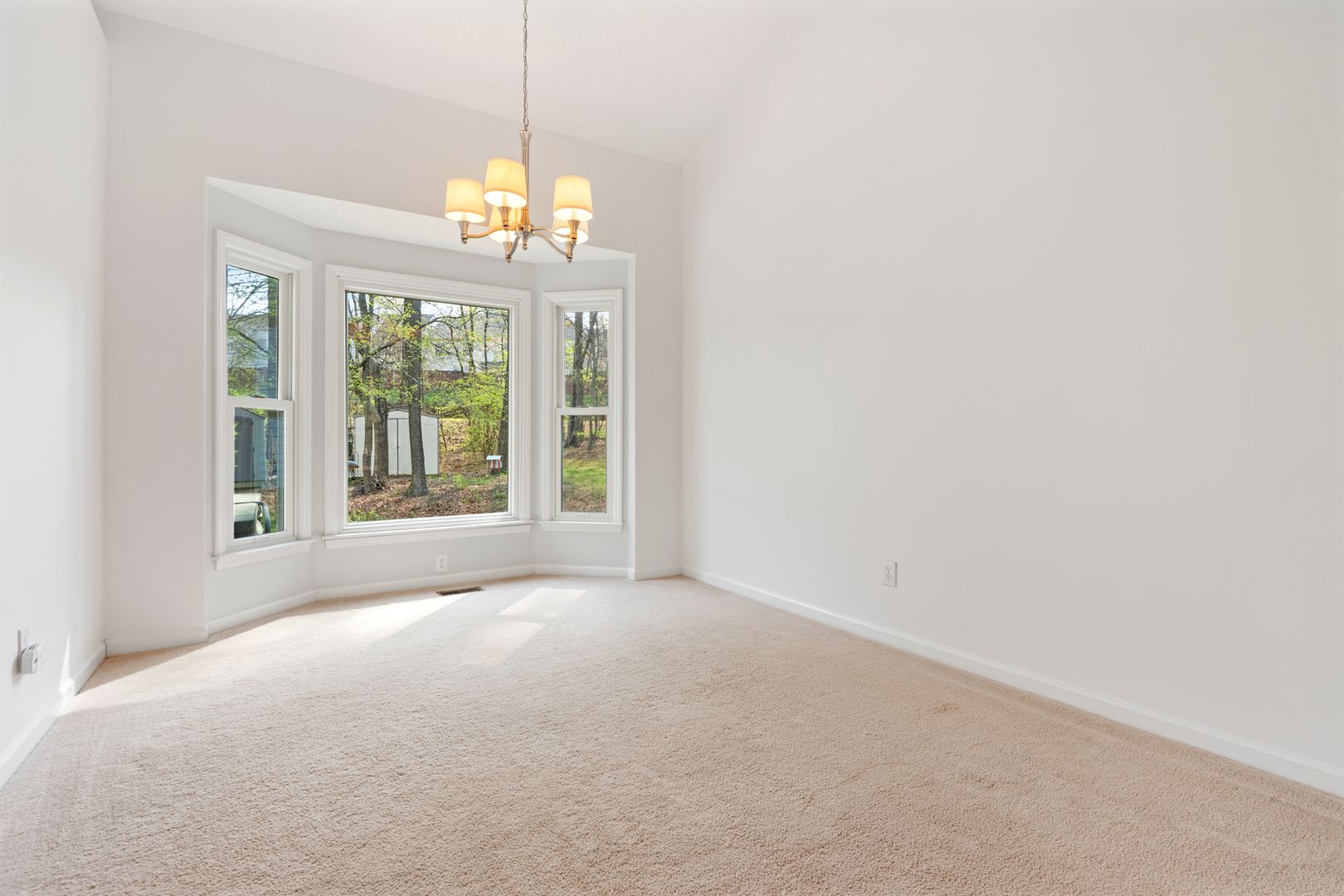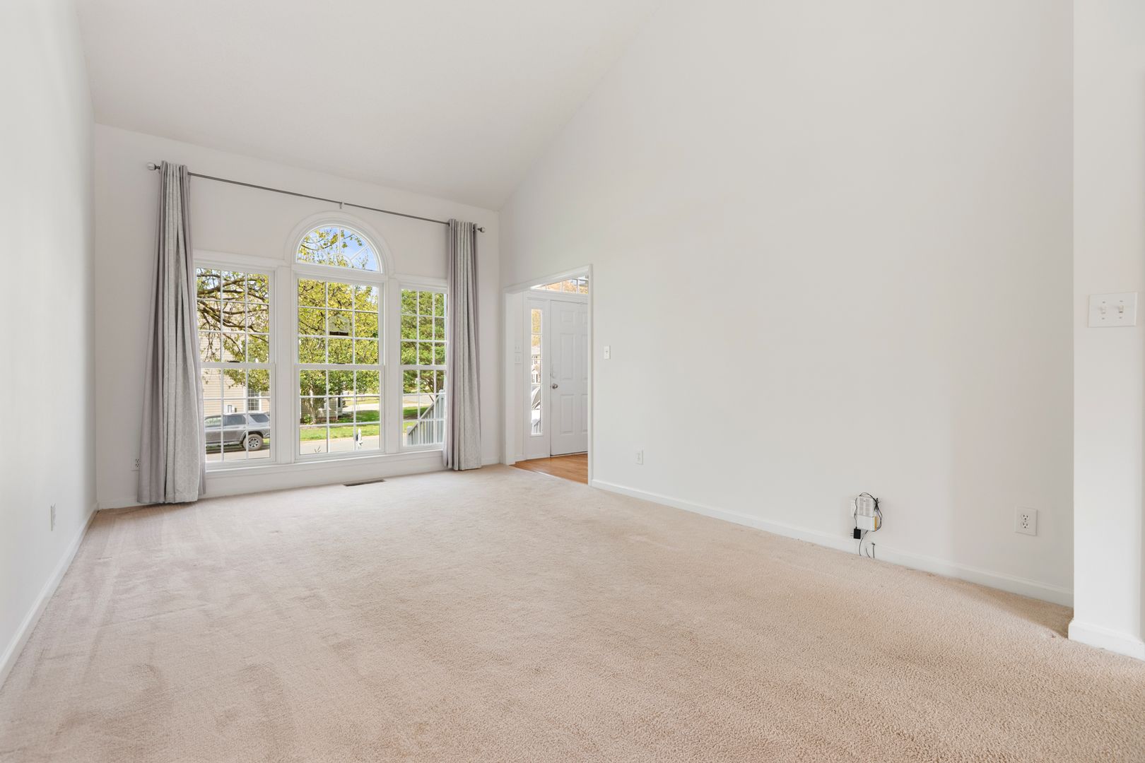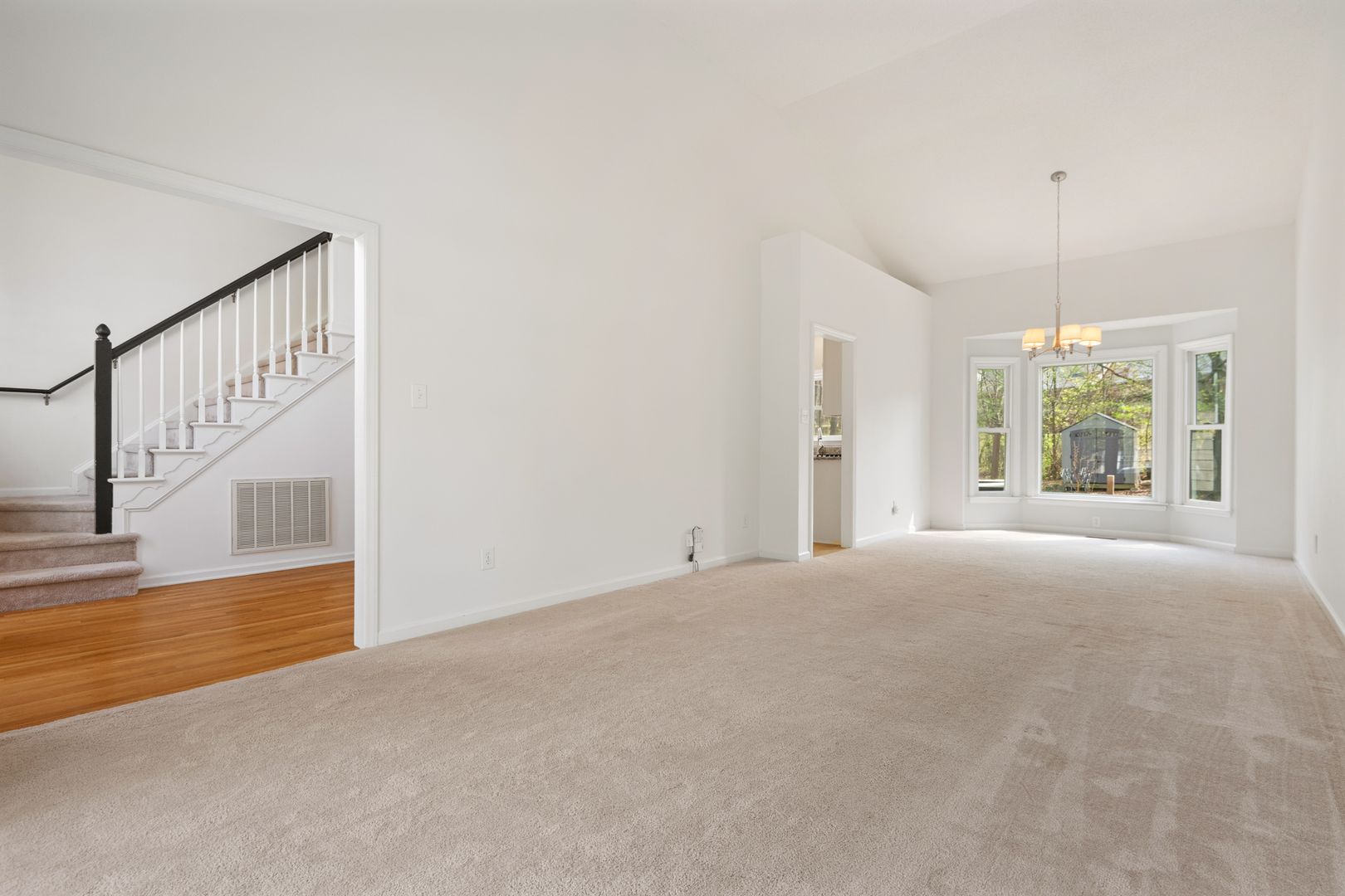 This light-filled home features a bright, open floor plan with impressive architectural details throughout. Step into the soaring two-story foyer with hardwood floors that set the tone for the rest of the home. The formal dining room showcases a vaulted ceiling and charming bay alcove, while the living room offers a vaulted ceiling and a stunning palladium window that floods the space with natural light.
