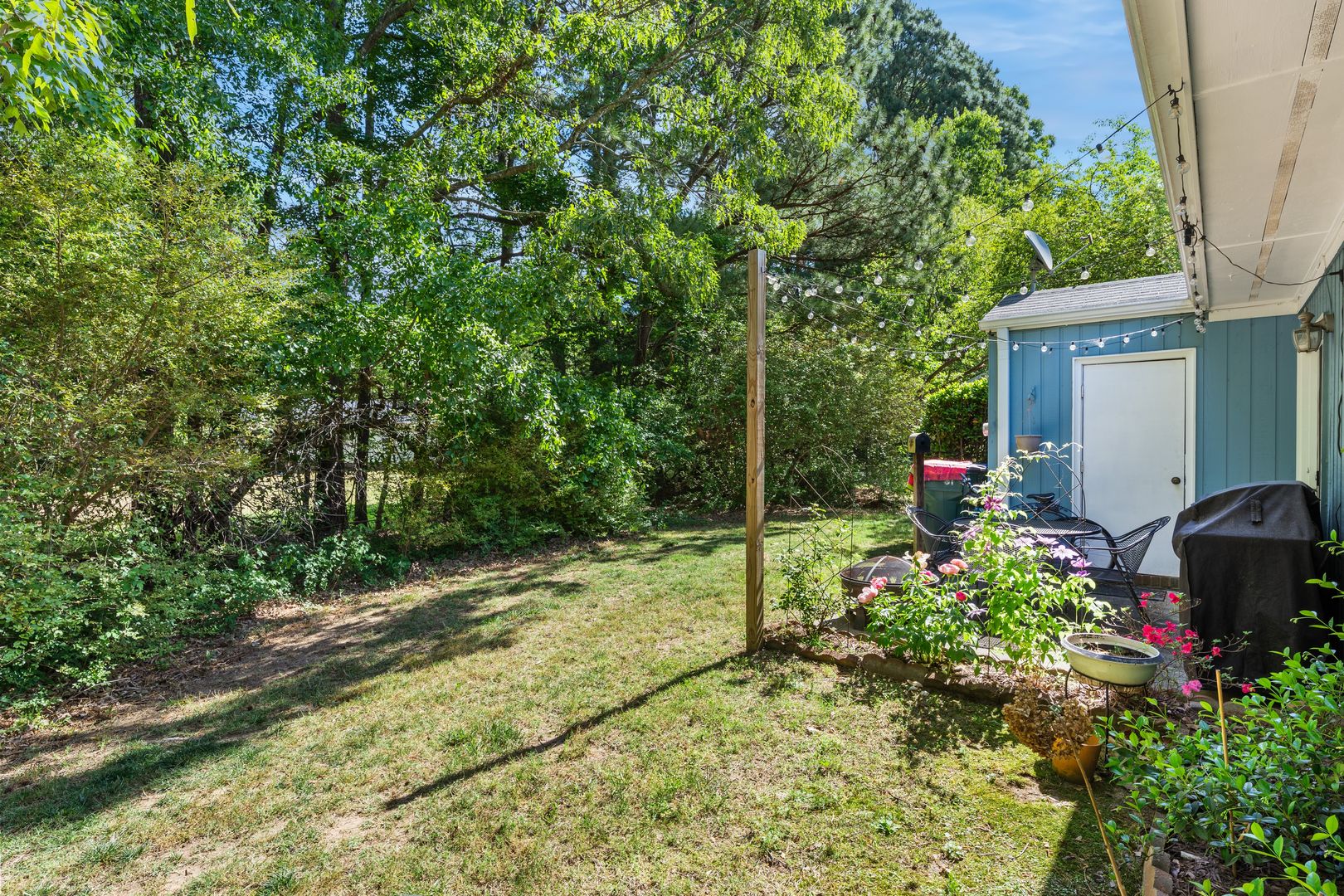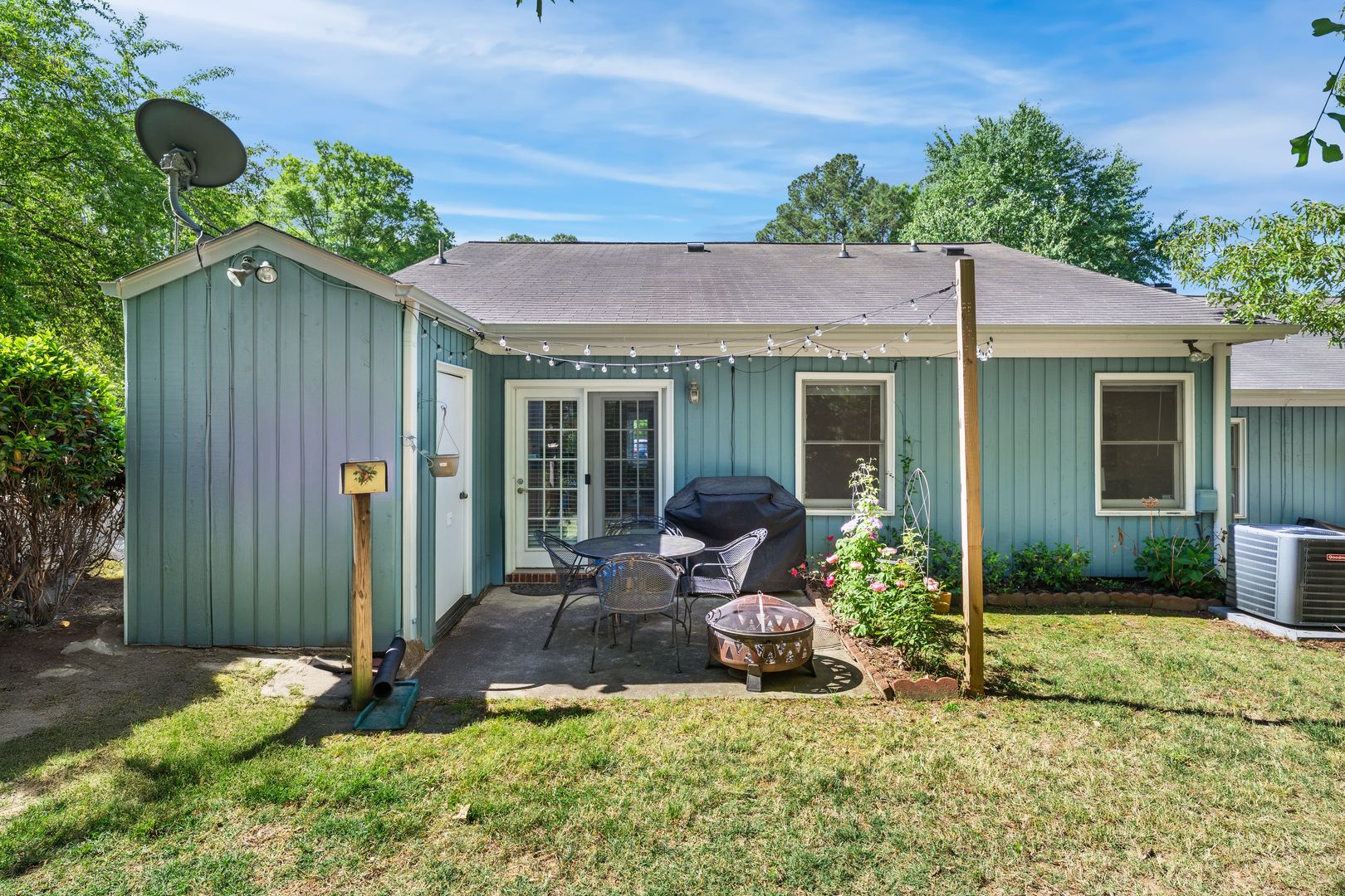 The back patio holds a grill and a storage room (available for the tenants use)