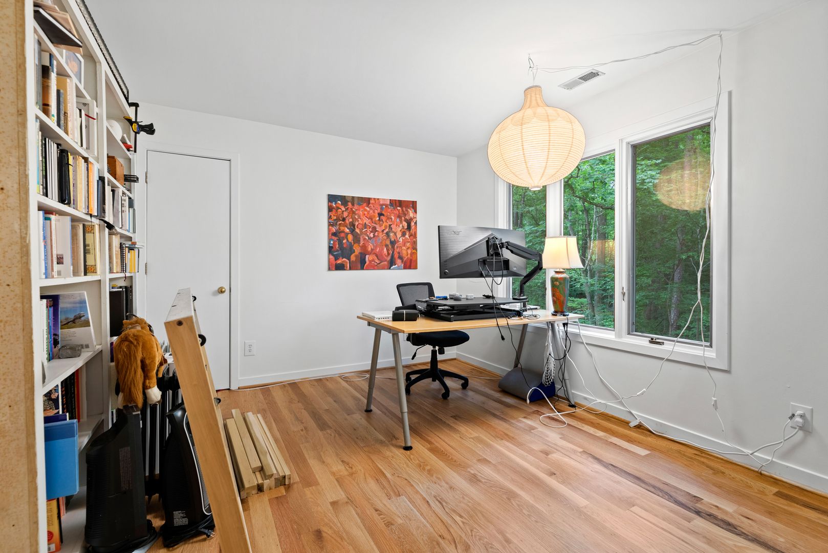 Welcome to Ironwoods! Rare gem on tranquil lot tucked away in the treetops. Bright & airy open floor plan boasting with hardwood floors downstairs and upstairs. Multiple rooms have built-in shelves to help you stay organized. The front room has a cozy fireplace perfect for snuggling up and relaxing. 2-story retreat with owner's suite and 3 additional bedrooms with large windows throughout. Welcome the morning on the screened porch or on the spacious deck leading to a fenced yard.
