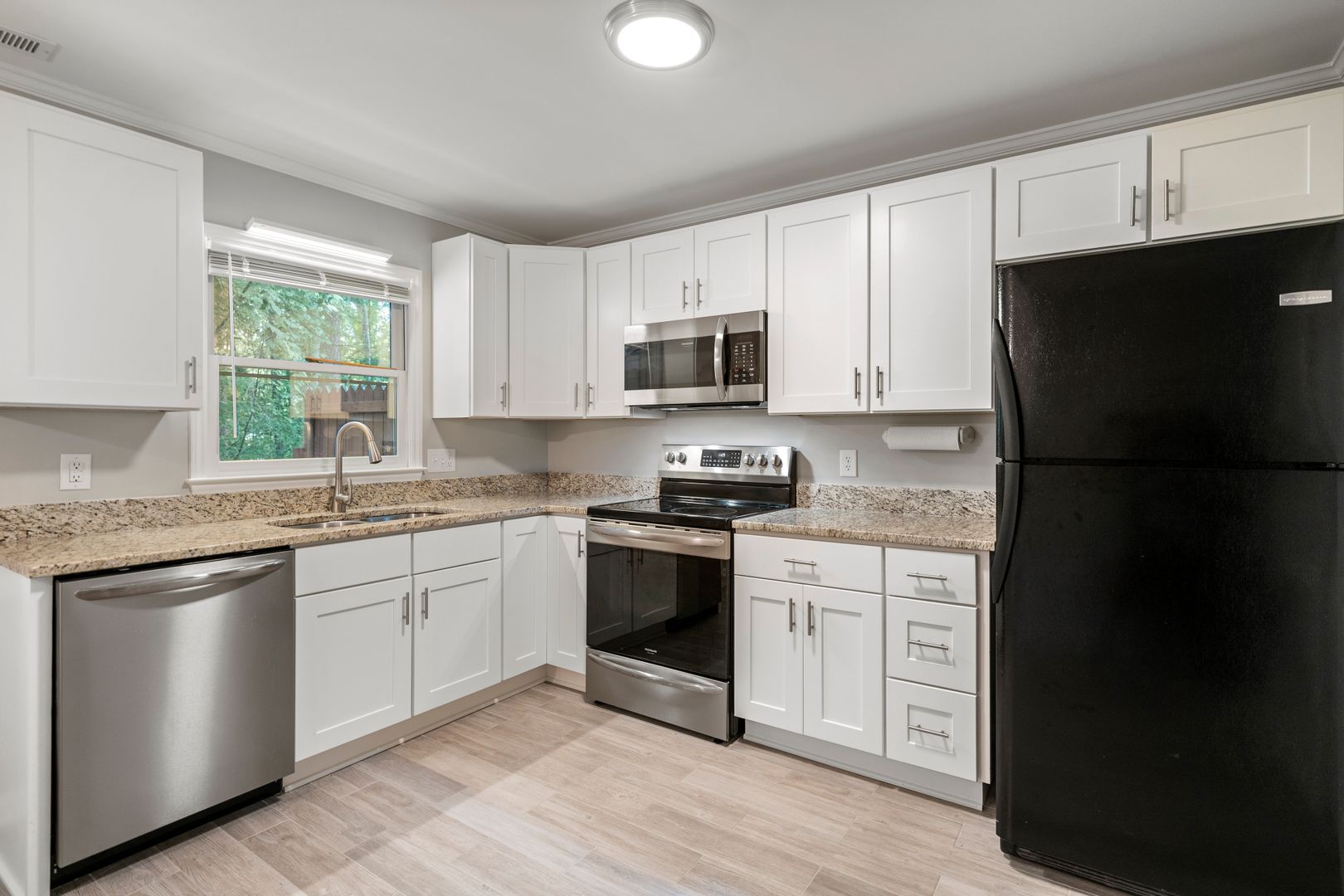 Neutral paint colors and flooring throughout make this unit feel fresh and modern.