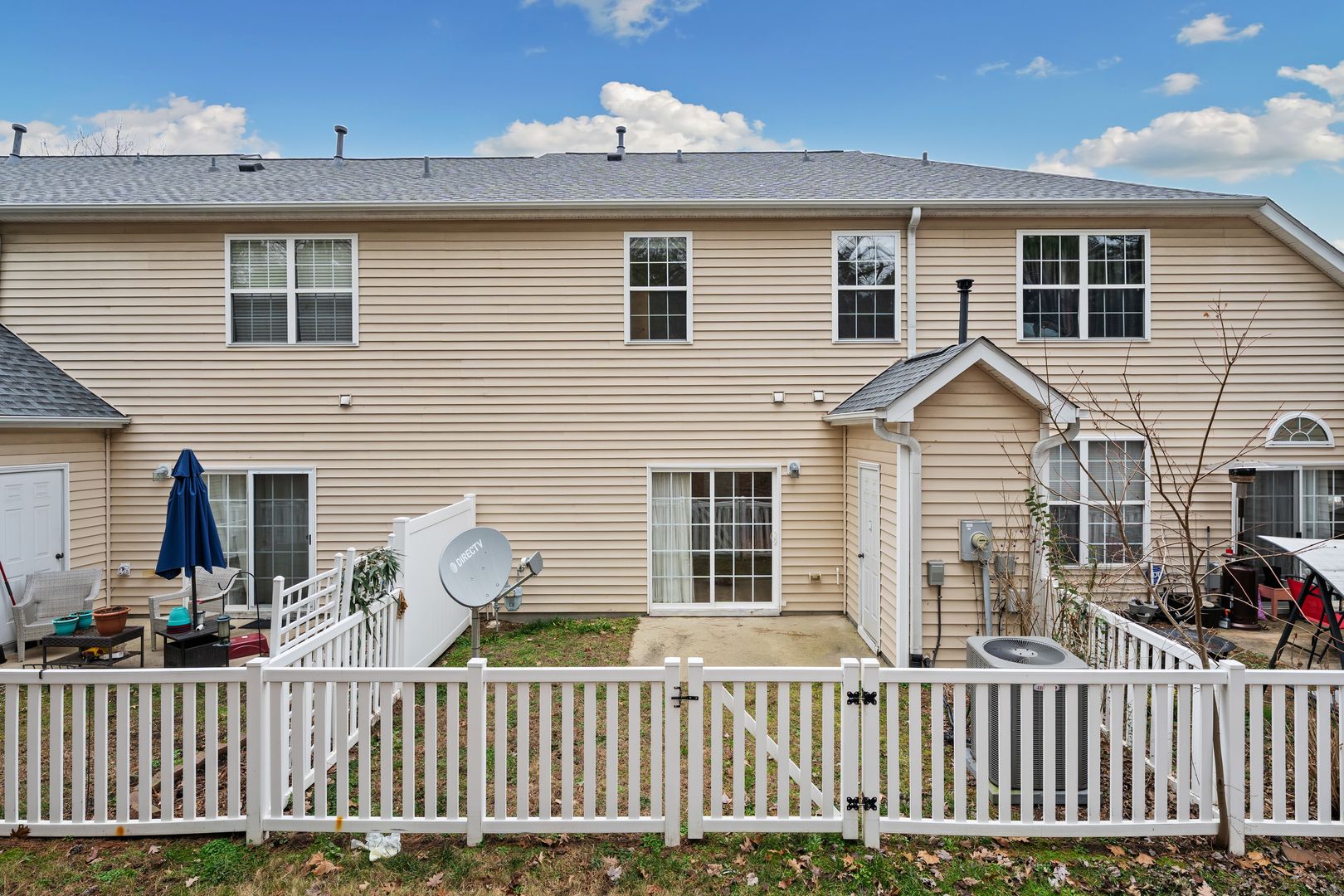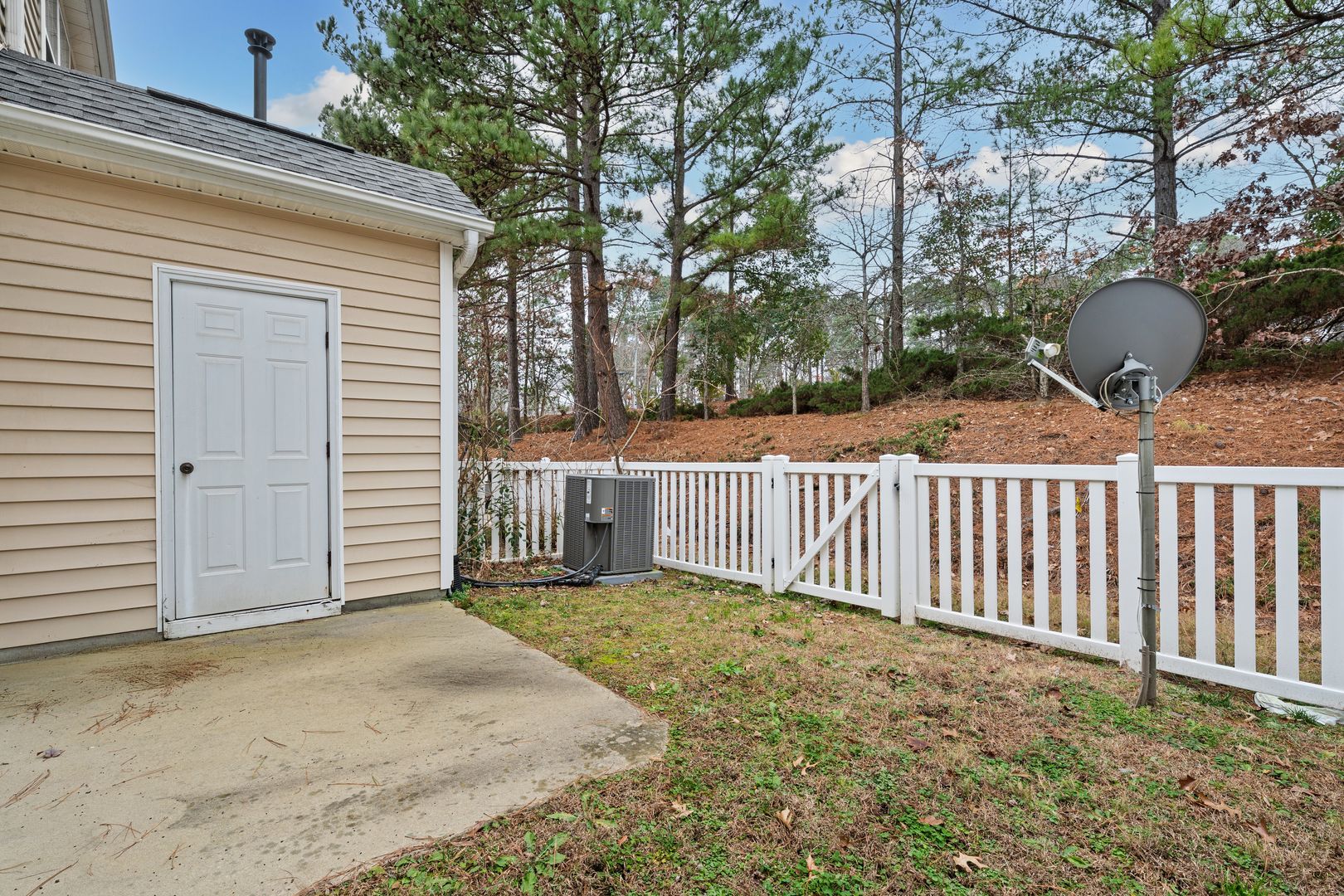 Step outside to a fenced backyard patio, ideal for relaxing, container gardening, or enjoying a bit of private outdoor space.