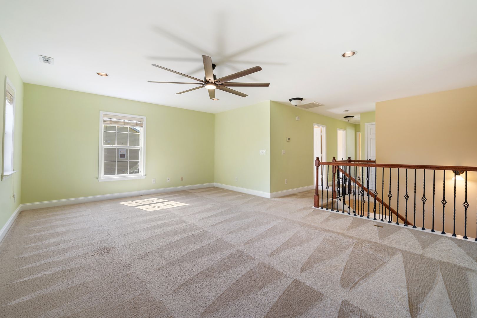 Boasting Real Hardwood floors, Gas Fireplace, both Can and Drop-Down Lighting, an open layout, Abundant Natural Light, and Ceiling fans throughout.