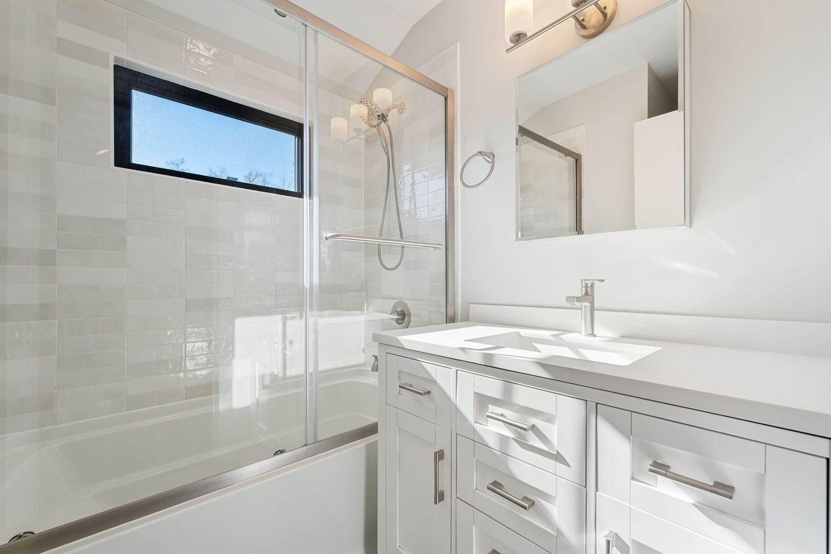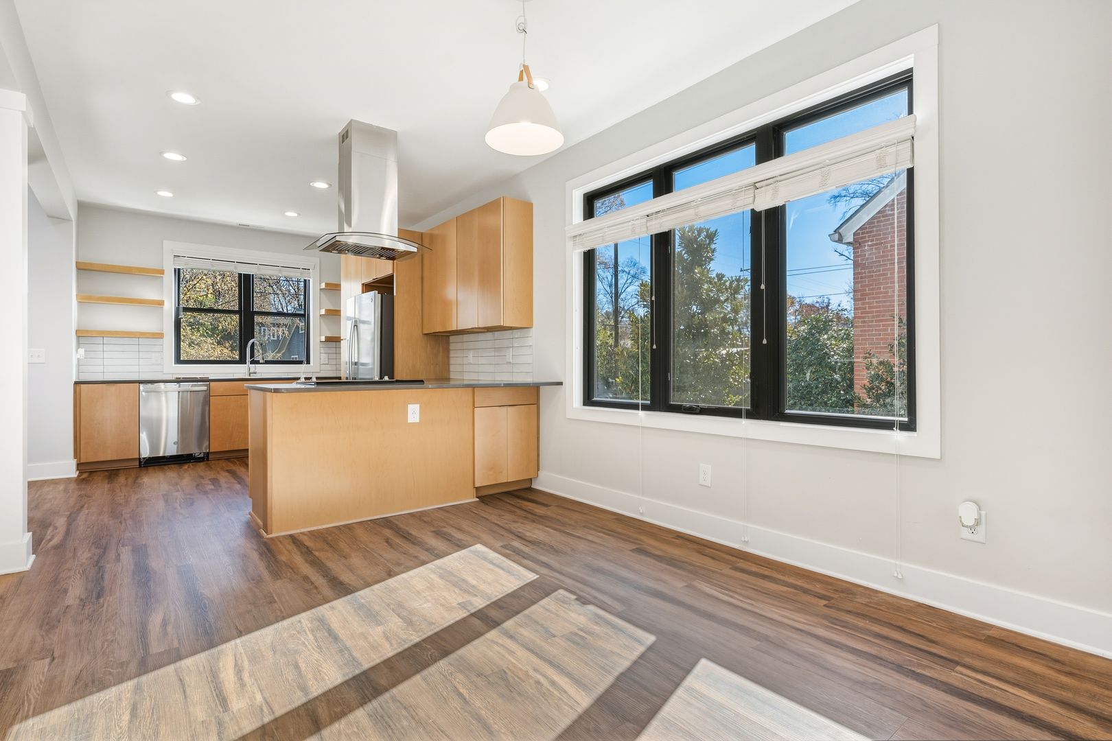 The light-filled open layout, where the chef’s kitchen flows seamlessly into the living and dining areas is highlighted by beautiful LVP and a stunning architectural staircase. The convenient downstairs half bath, paired with an in-unit washer/dryer makes everyday living effortless.