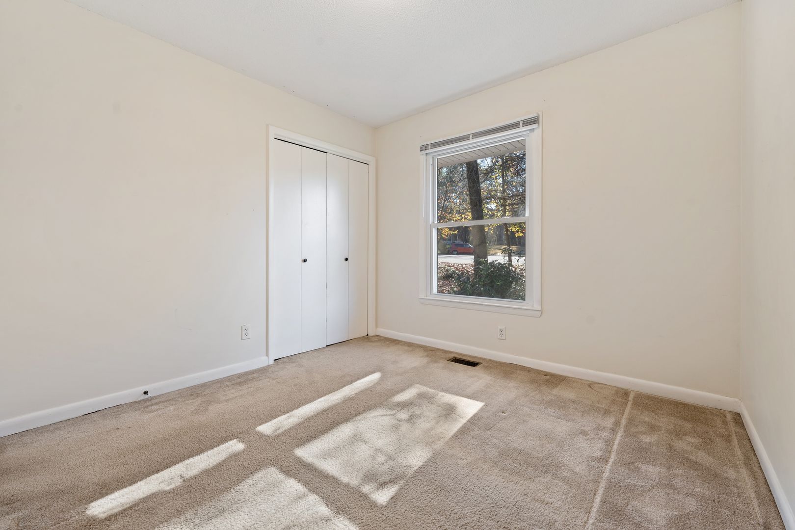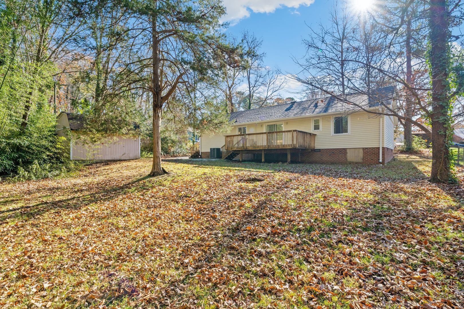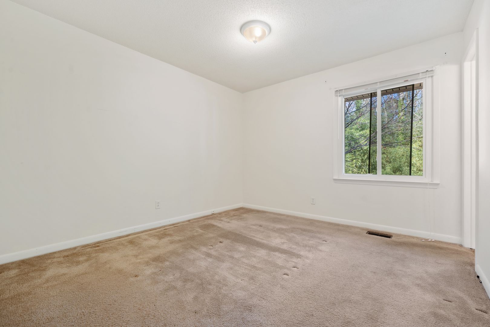 Experience the privacy of this property located in North Durham in a cul-de-sac street surrounded by trees. The houses are well spaced from each other, which gives you even more privacy. This house features 3 bedrooms, one being a suite, 2 full bathrooms, an open-spaced living room connected to the kitchen and a bonus area that gives access to the deck. The kitchen counts with lots of cabinet space, 2 pantries, new LVP floor, a great view to the backyard and new washer/dryer in a separate closet. In the living room you'll find wooden cabinets and shelf ready for storage and an amazing fully functional wooden burning fireplace on a white brick wall. The carpet in the bedrooms and living room brings a charming and cozy aspect to the house.