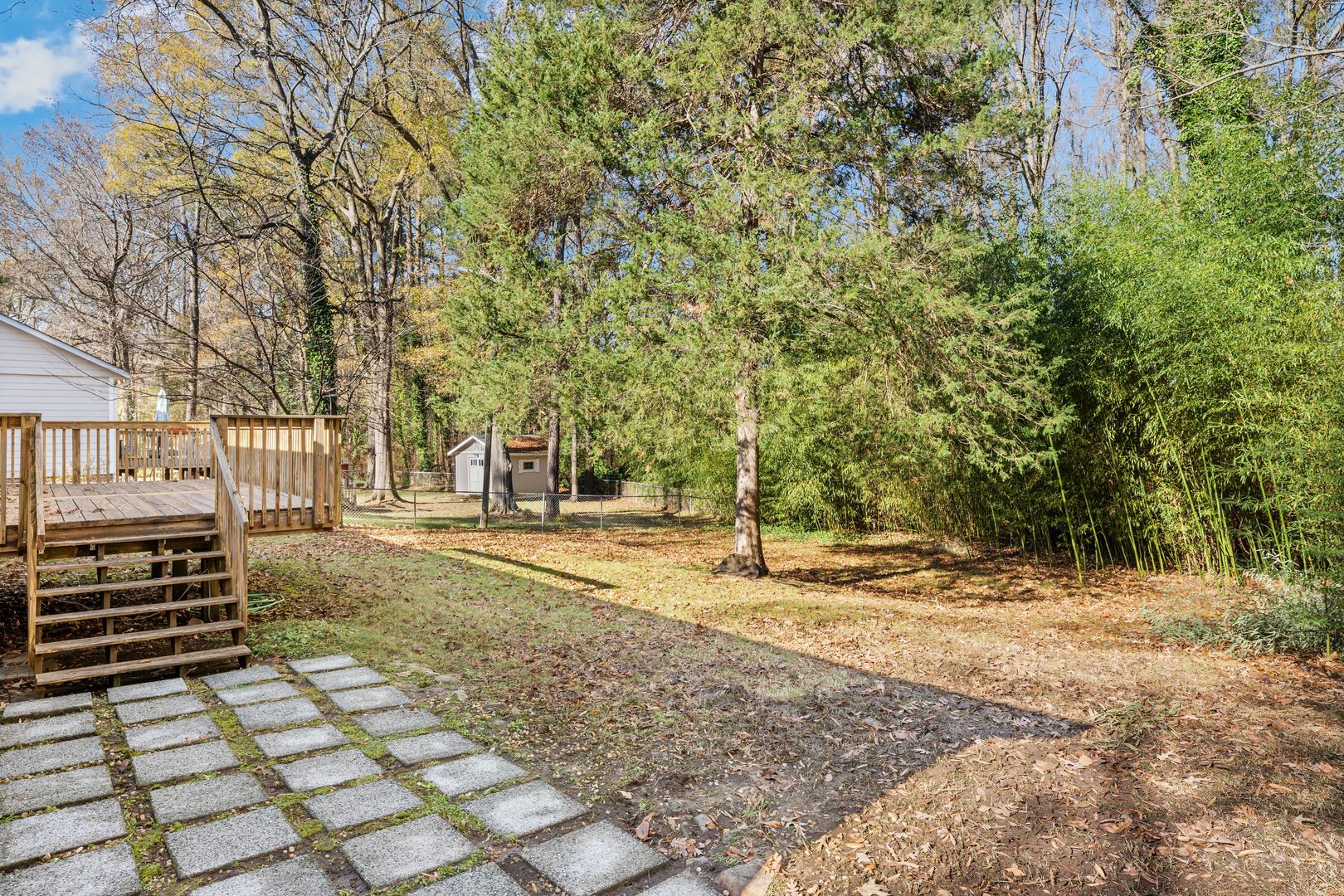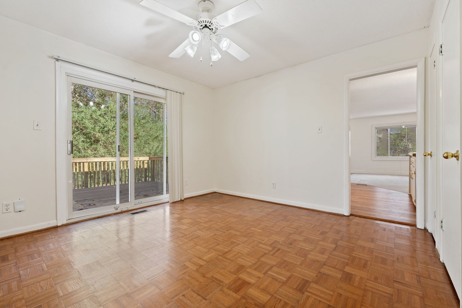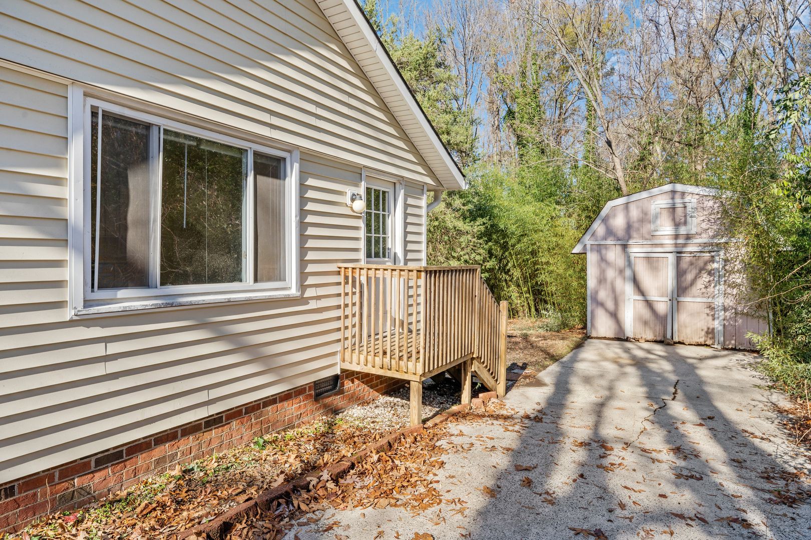 Experience the privacy of this property located in North Durham in a cul-de-sac street surrounded by trees. The houses are well spaced from each other, which gives you even more privacy. This house features 3 bedrooms, one being a suite, 2 full bathrooms, an open-spaced living room connected to the kitchen and a bonus area that gives access to the deck. The kitchen counts with lots of cabinet space, 2 pantries, new LVP floor, a great view to the backyard and new washer/dryer in a separate closet. In the living room you'll find wooden cabinets and shelf ready for storage and an amazing fully functional wooden burning fireplace on a white brick wall. The carpet in the bedrooms and living room brings a charming and cozy aspect to the house.