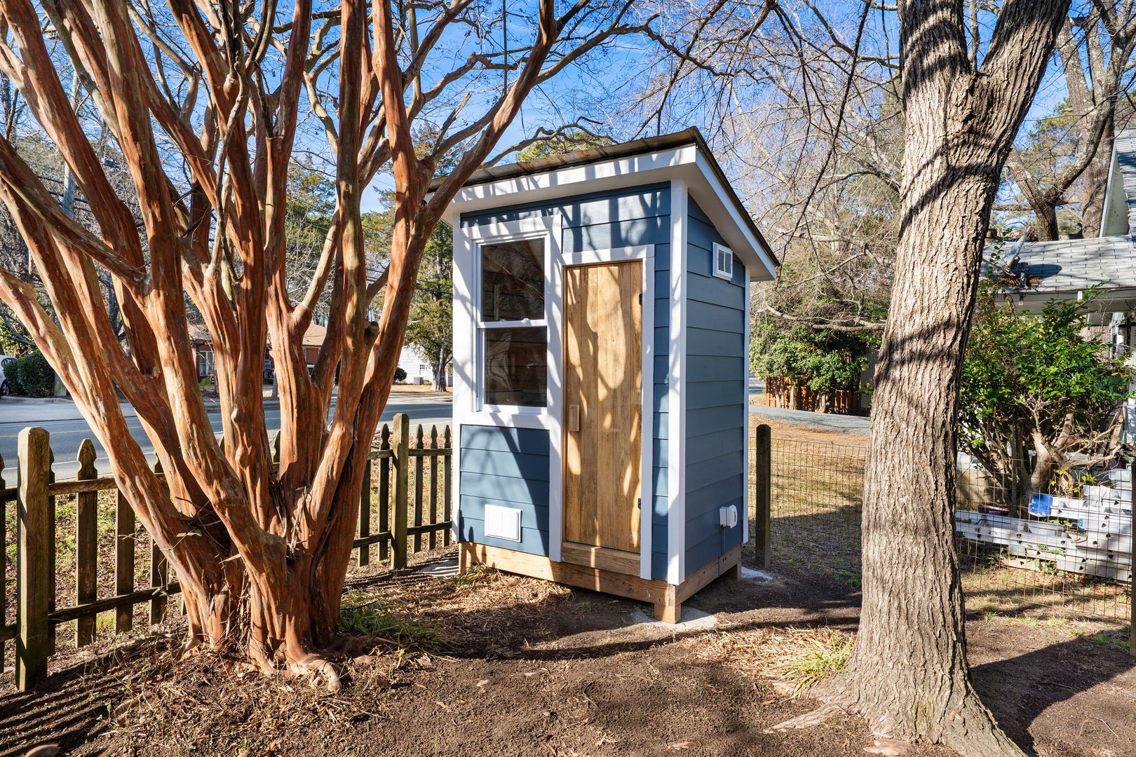 - Shed with garden tools, lawn mower, leaf blower and others. You can also use it as a storage.