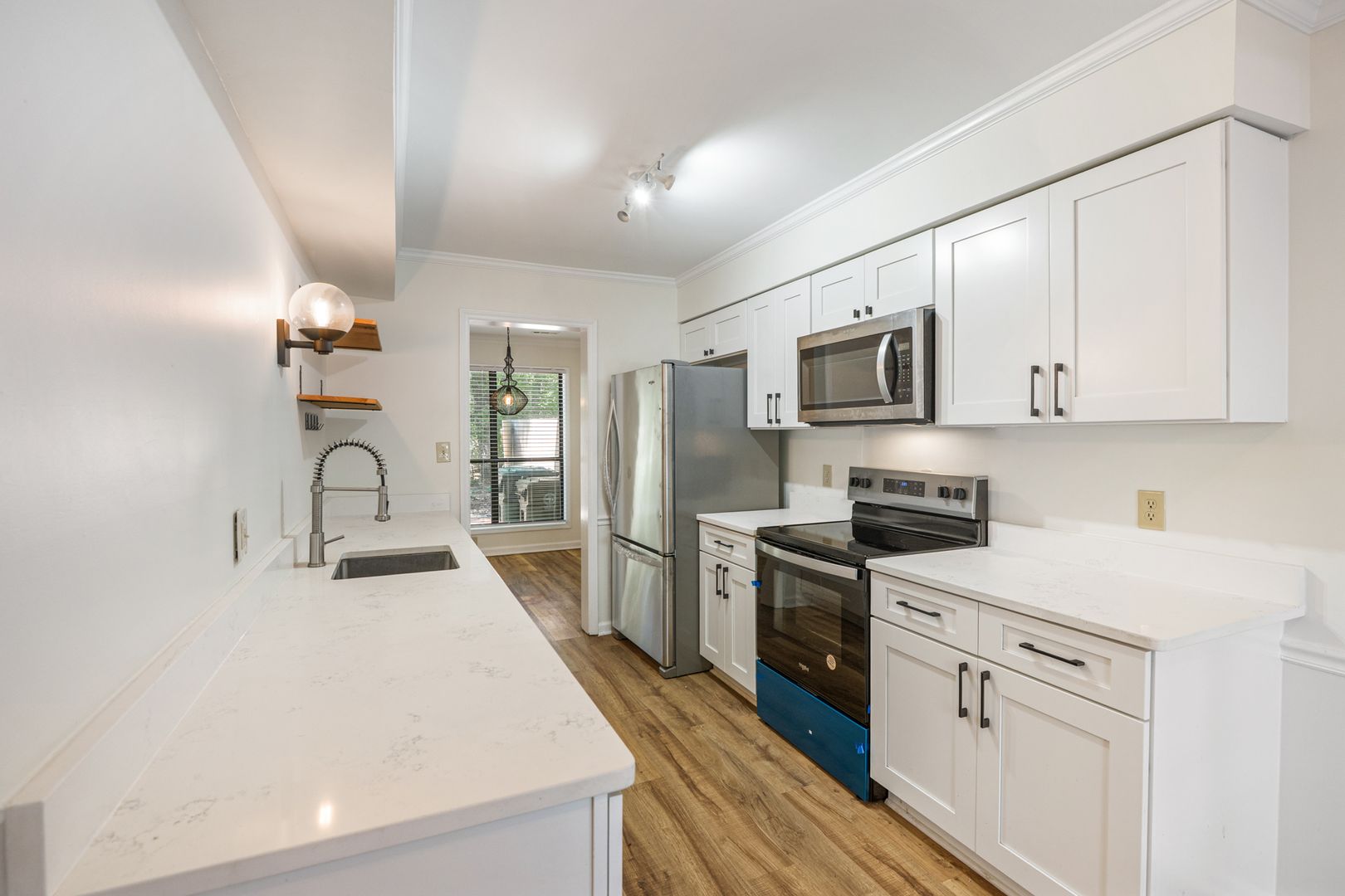 The newly renovated kitchen is a chef's delight, equipped with modern amenities such as an ice maker, dishwasher, garbage disposal, electric range, microwave, and a fridge. The townhouse also offers washer and dryer connections for your convenience.