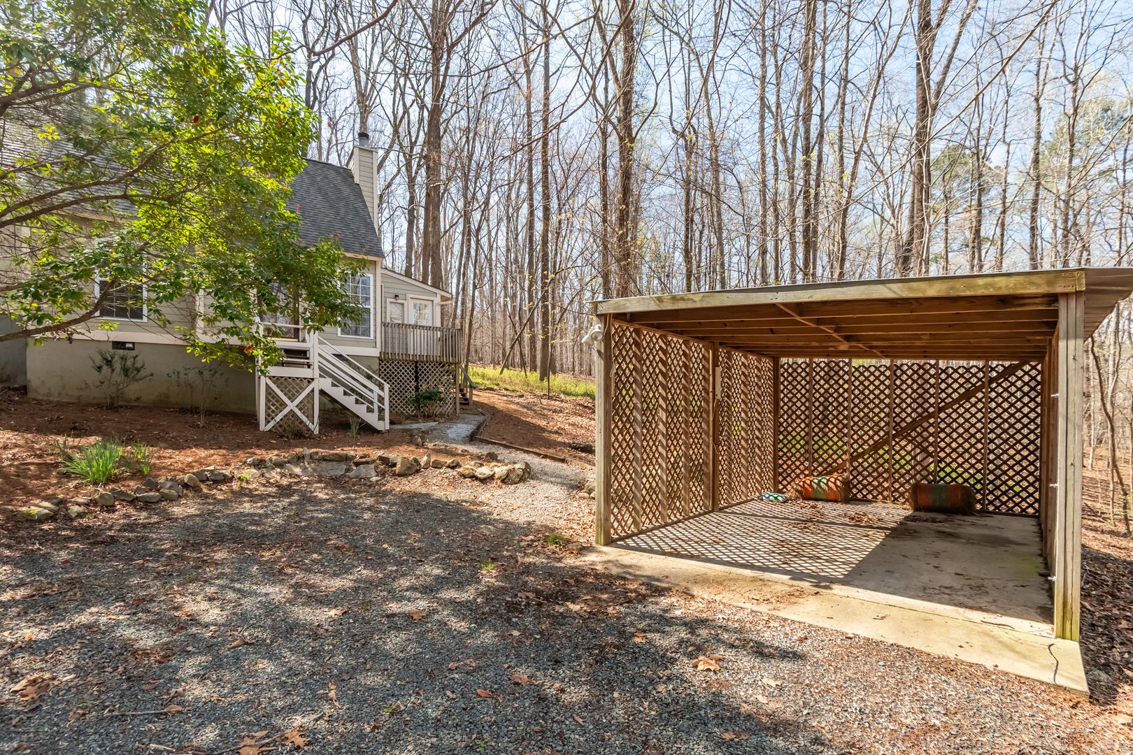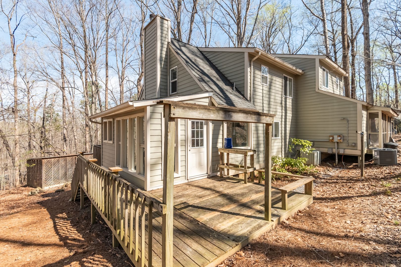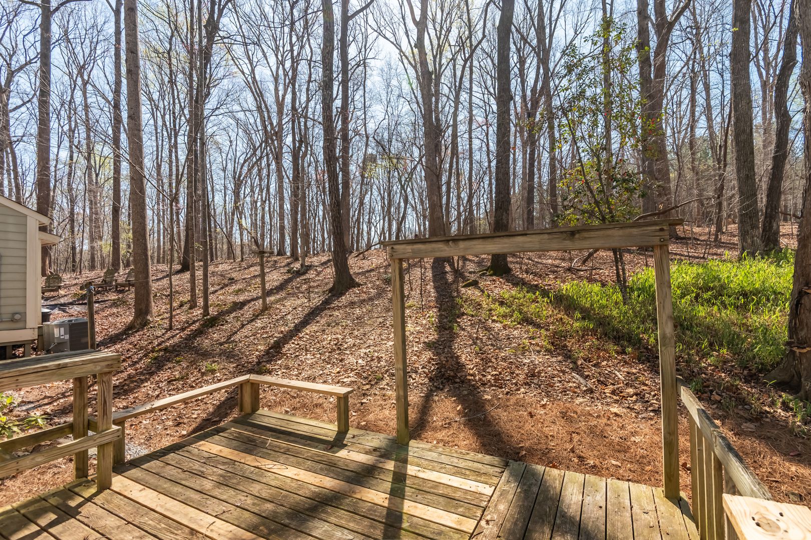 Step outside to enjoy a large wooded outdoor space with multiple decks, complete with hooks ready for a porch swing and plenty of great trees for hammocks—ideal for relaxing and taking in the quiet surroundings.