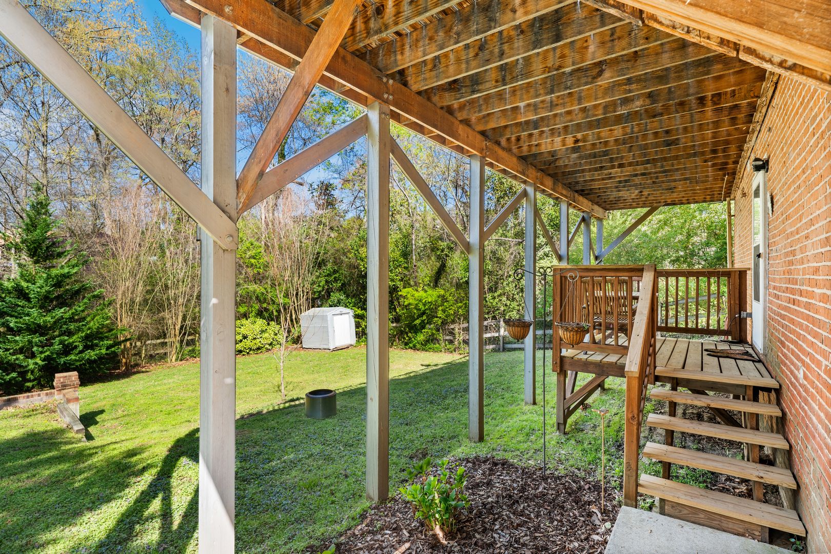 You'll share a large, fully-fenced-in yard with the upstairs residents and have a small, covered deck for yourself. You're less than a mile from Main Street and Brightleaf Square in Downtown Durham, as well as having quick access to NC 147 and RTP.