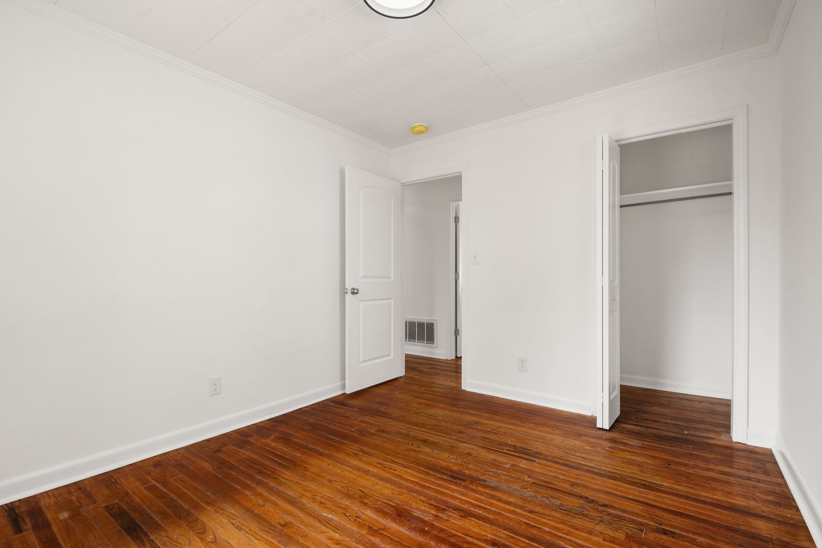 Recently renovated brick ranch in Durham, NC featuring three bedrooms and one bath conveniently on 1 level. The interior shows fresh new paint and hardwood floors throughout, complemented by all-new stainless steel appliances in the updated kitchen.