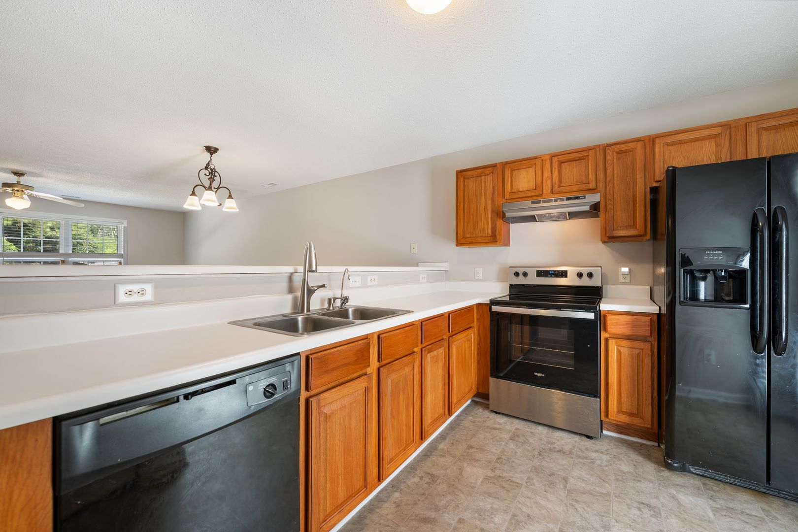 Step inside to find a bright, open-concept living area with warm natural light, neutral tones, and easy-flowing layout—ideal for entertaining or relaxing. The modern kitchen features sleek appliances, ample cabinetry, and a breakfast bar perfect for casual meals or morning coffee.