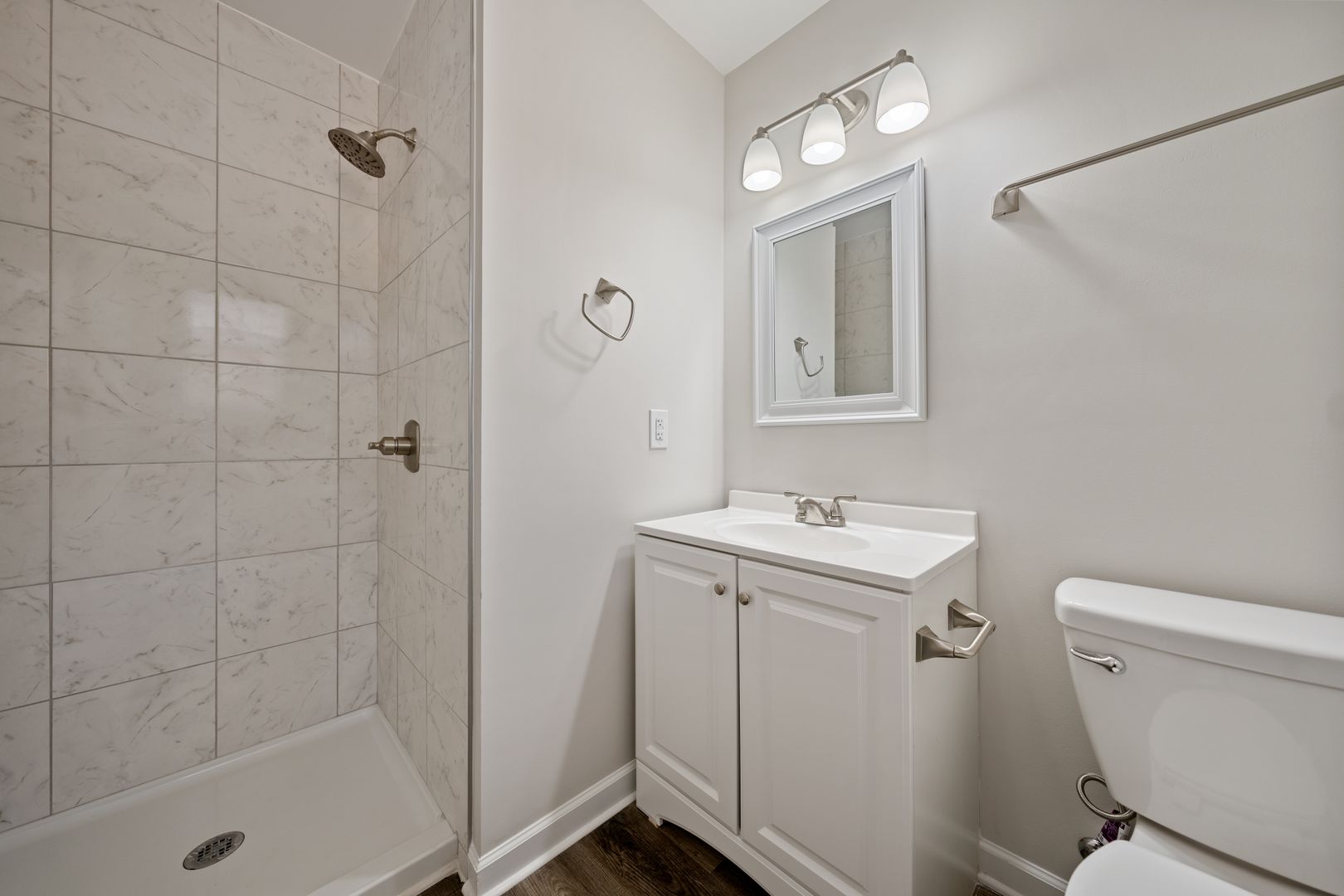 Featuring new flooring, upgraded finishes throughout and brand new stainless steel kitchen appliances, this home's interior is sure to catch your eye! This layout includes a living room with a cathedral ceiling and wood burning fireplace, a freshly painted dining room off the kitchen & a back deck with outdoor storage. Renovation also includes brand new bathrooms with tiled showers & granite kitchen countertops!