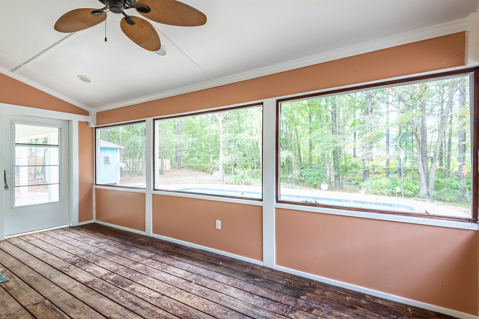 Beyond the pool lies a meticulously maintained fenced-in backyard, ensuring privacy and security while offering a safe space for kids and pets to play freely. The screened-in porch provides an idyllic setting for sipping your morning coffee or relishing in an evening breeze without the intrusion of pesky insects.