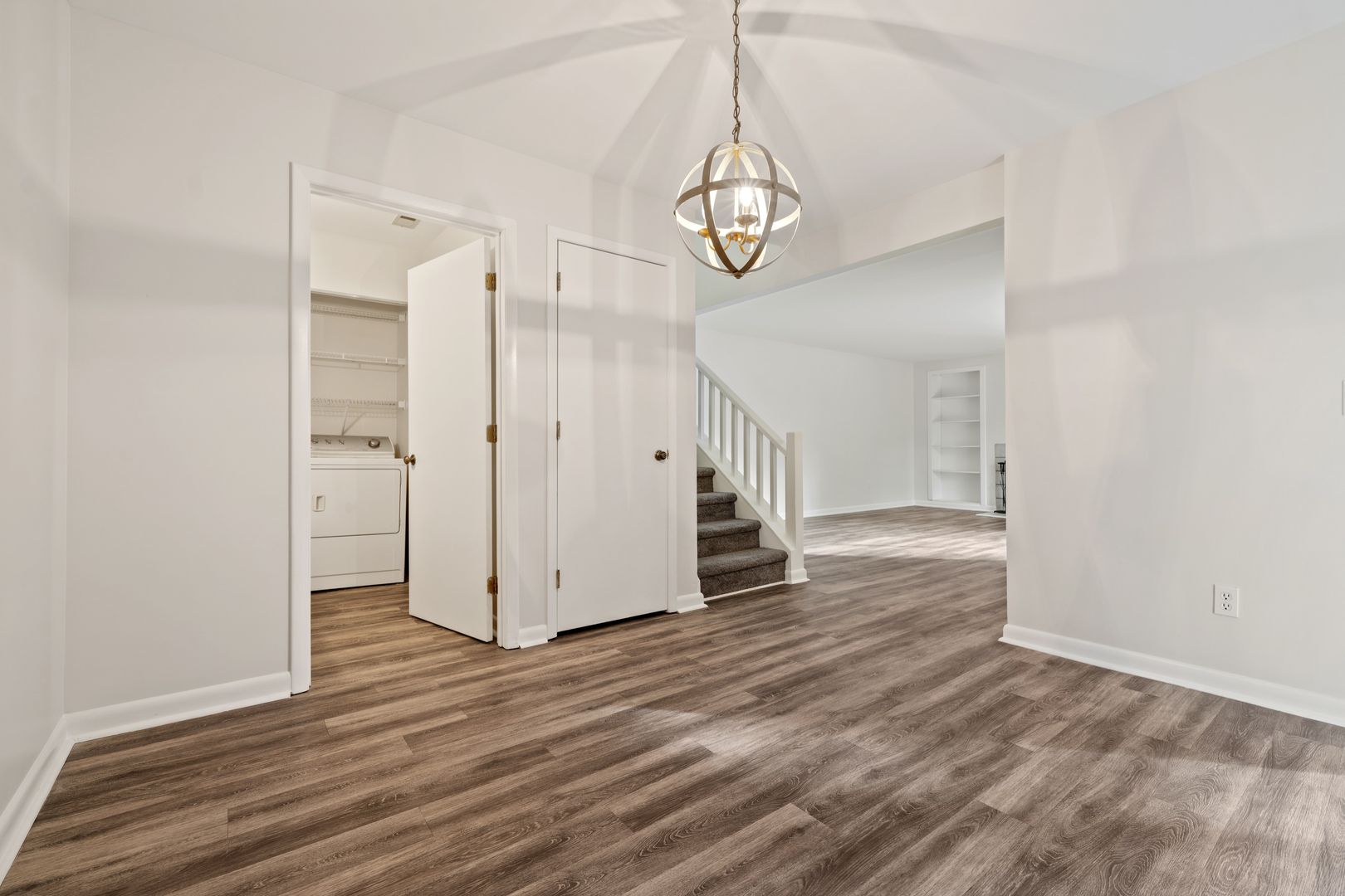 Freshly painted, oversized living room filled with natural light. Separate dining room for easy, flexible living. Stylish LVP flooring throughout the entire first floor A private outdoor deck perfect for relaxing or entertaining