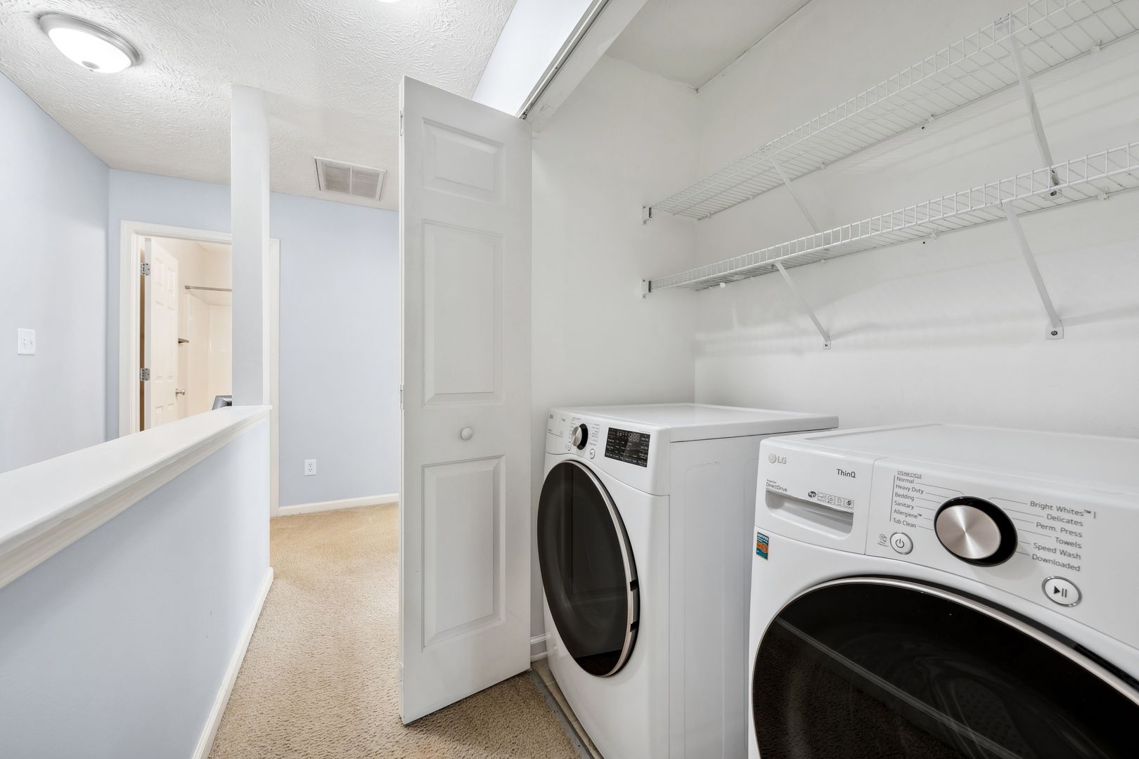 The home begins in the open concept kitchen overlooking the wide, expansive living room with a huge television waiting just for you. The eat-in kitchen sports all stainless steel appliances and a roaming island ready for you to make your first meal. Half bathroom is also downstairs for your guests to use. Head out back to find your private patio waiting for you to kick back and relax! Upstairs you'll find the 3 bedrooms and two full baths (one inside the primary bedroom). You'll also find the washer/dryer as well!