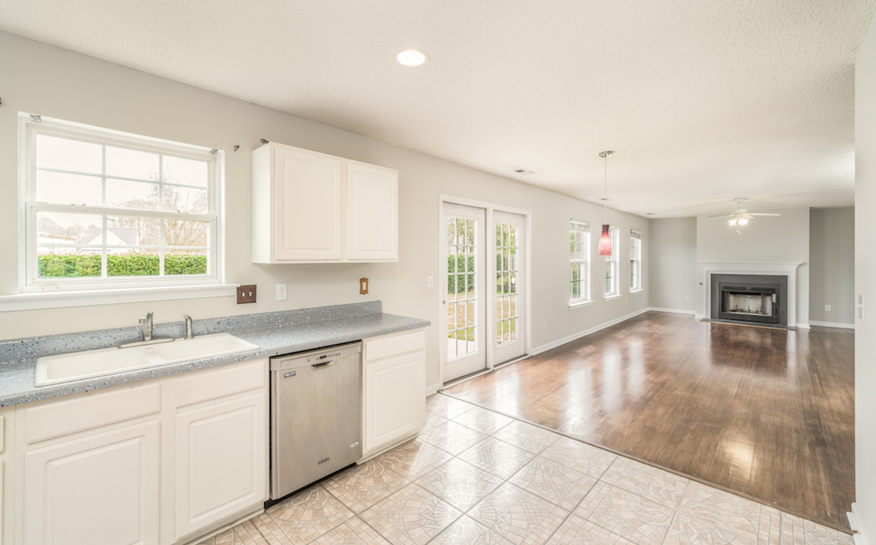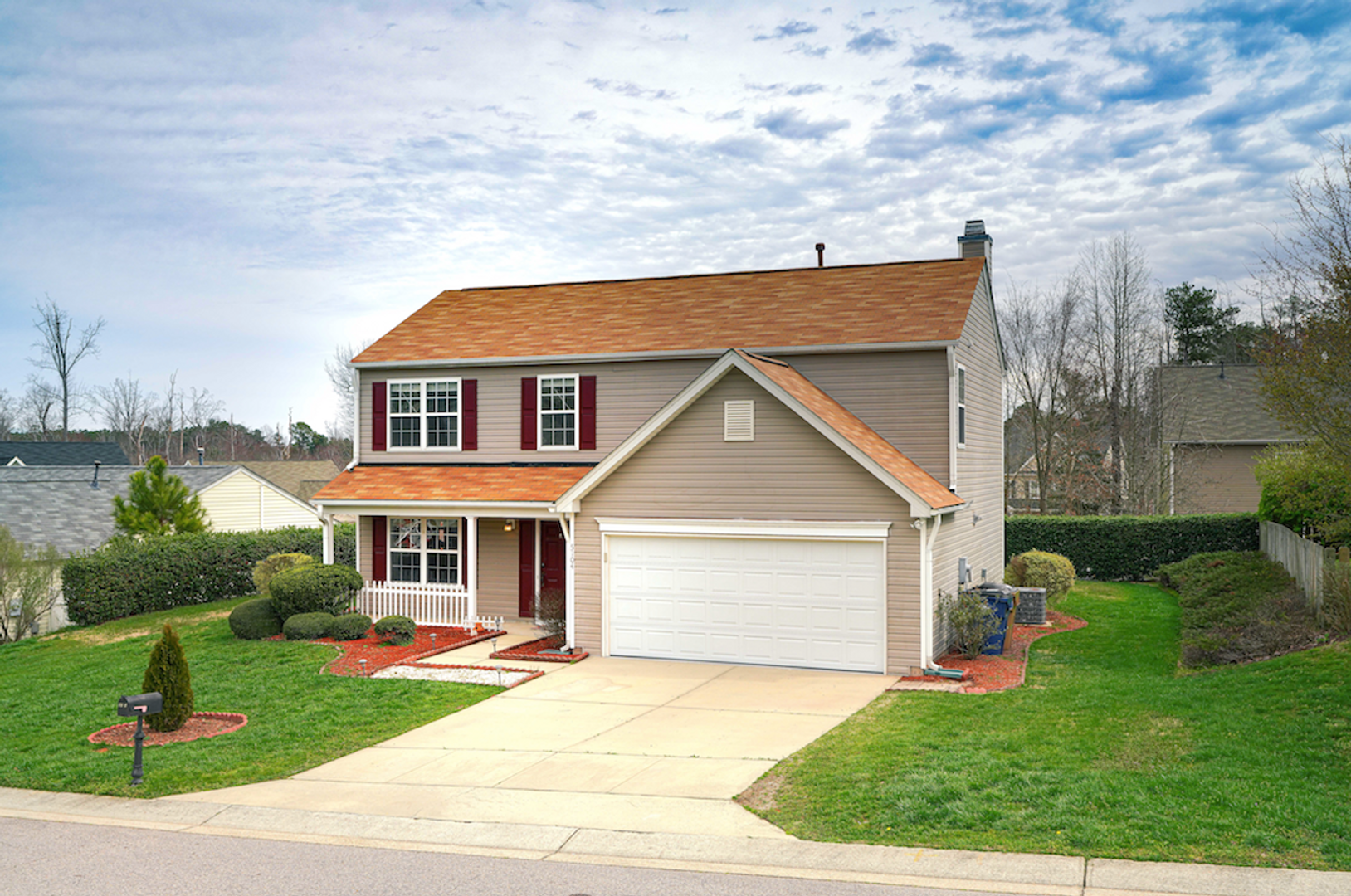 This home features a two-car garage, open floorplan between the living room and kitchen with new flooring, stainless steel appliances, gas range, gas fireplace, designated dining room off the kitchen, and a half bath on the main floor!