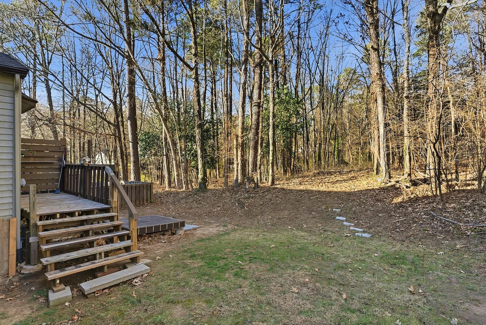 Backyard deck opens up to gorgeous natural wood setting great for bird watching while enjoying your morning coffee. Great location with easy access to UNC and Duke!