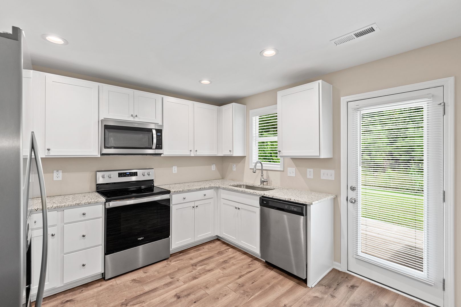 This cozy townhome features a bright kitchen with beautiful granite countertops. The kitchen transitions nicely to the dining room and living room making this home the perfect place for hosting friends and family.