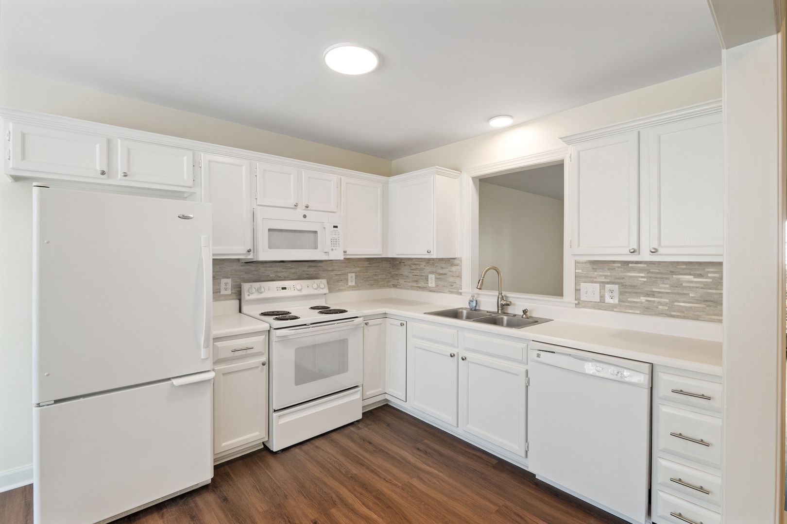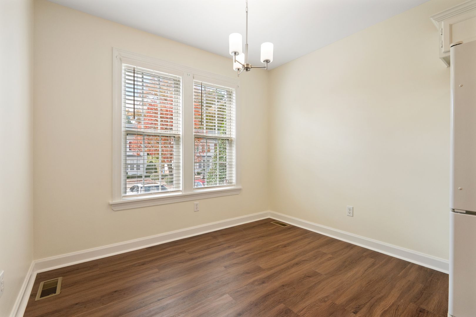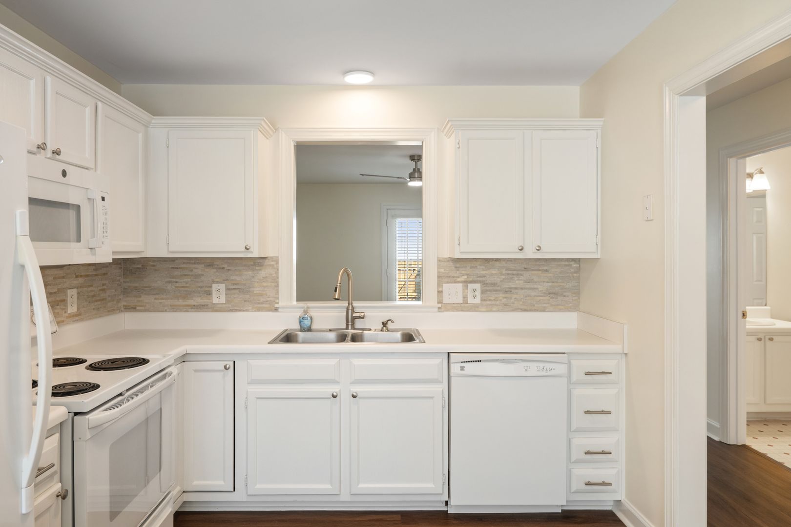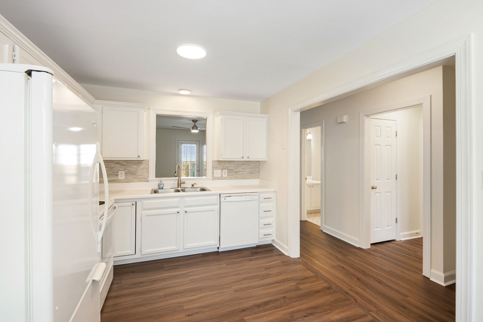 Experience low-maintenance living in Fuquay-Varina, NC. This charming ranch townhome features vinyl flooring, neutral paint and updated interior lighting and fans throughout. Two private bedrooms with a dual-entry bath, separate laundry room with washer and dryer included and hall closet for extra storage. The kitchen features cabinets with updated brushed nickel hardware, a brightly lit dining room complemented by a stylish backsplash for a sleek, modern look. Spacious living room leads to a covered deck with private fenced yard and extra storage. Stroll the sidewalk-lined streets to nearby conveniences like La Farm Bakery for a fresh cup of coffee, a sweet treat, or a light lunch. Explore the many other amenities this vibrant community offers like McWally's Entertainment Center, grocery, restaurants, pharmacy, medical services less than .2 miles from the community. With quick access to NC-55 and US-401, commuting to Holly Springs or Downtown Raleigh is a breeze. This great home is available now and won't last long!